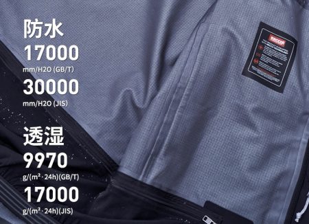 您是否注意過:許多戶外及雪服上標(biāo)注“有效透濕 9,970 g/m2·24h" 或更高?——顧名思義,每平方米的面料在 24 小時(shí)內(nèi)能疏出多少水蒸氣。數(shù)值越高,越能防止汗液積累、悶熱濕冷。這是品牌表達(dá)“這件衣服能將濕氣快速排出,不讓你感受濕冷堆積"的方式。
